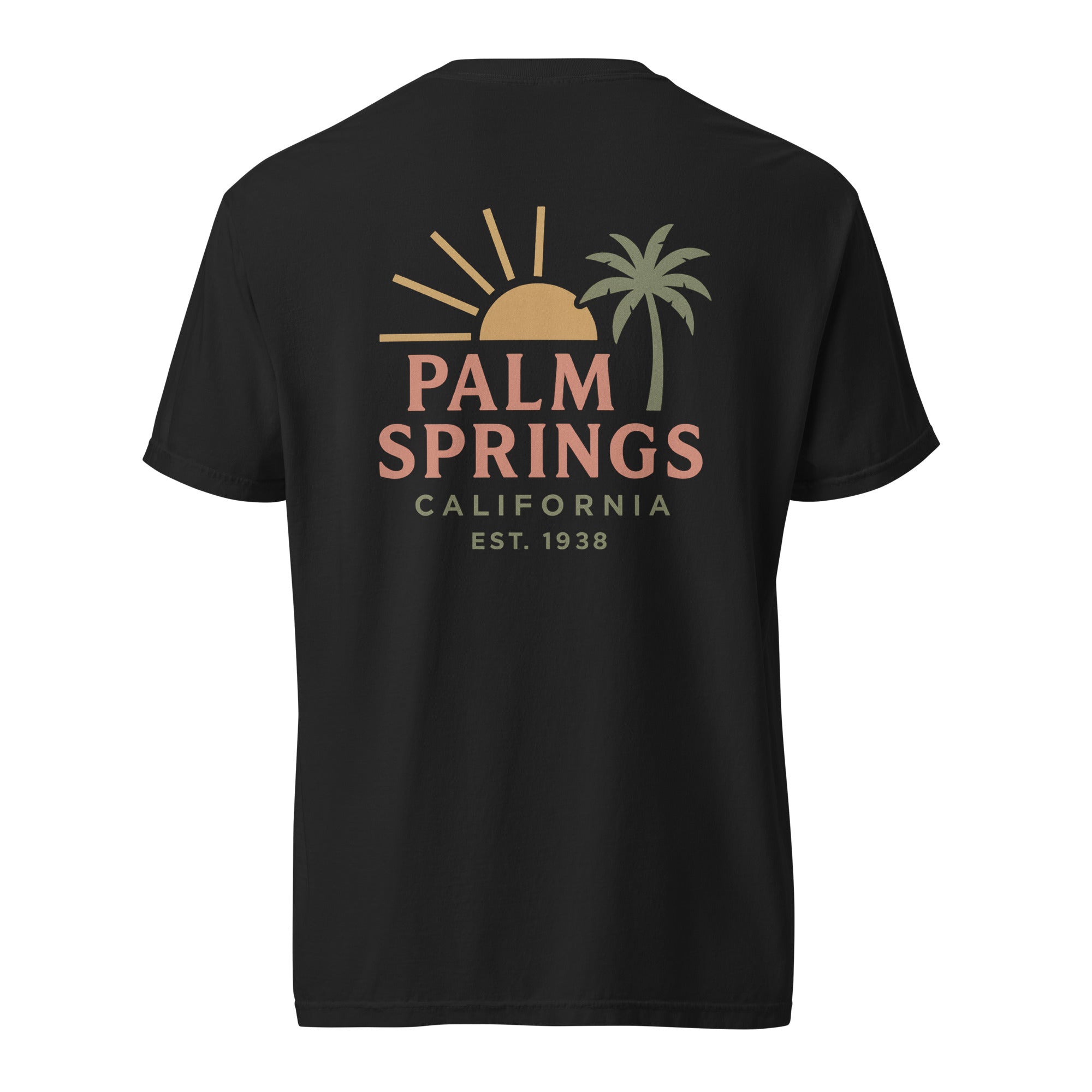 Crafted from ultra-soft, breathable fabric with a relaxed, modern fit, this piece brings elevated simplicity to desert living. The graphic pulls from mid-century architecture and long, pastel-colored afternoons — giving it a uniquely Palm Springs feel without being loud or over-designed.