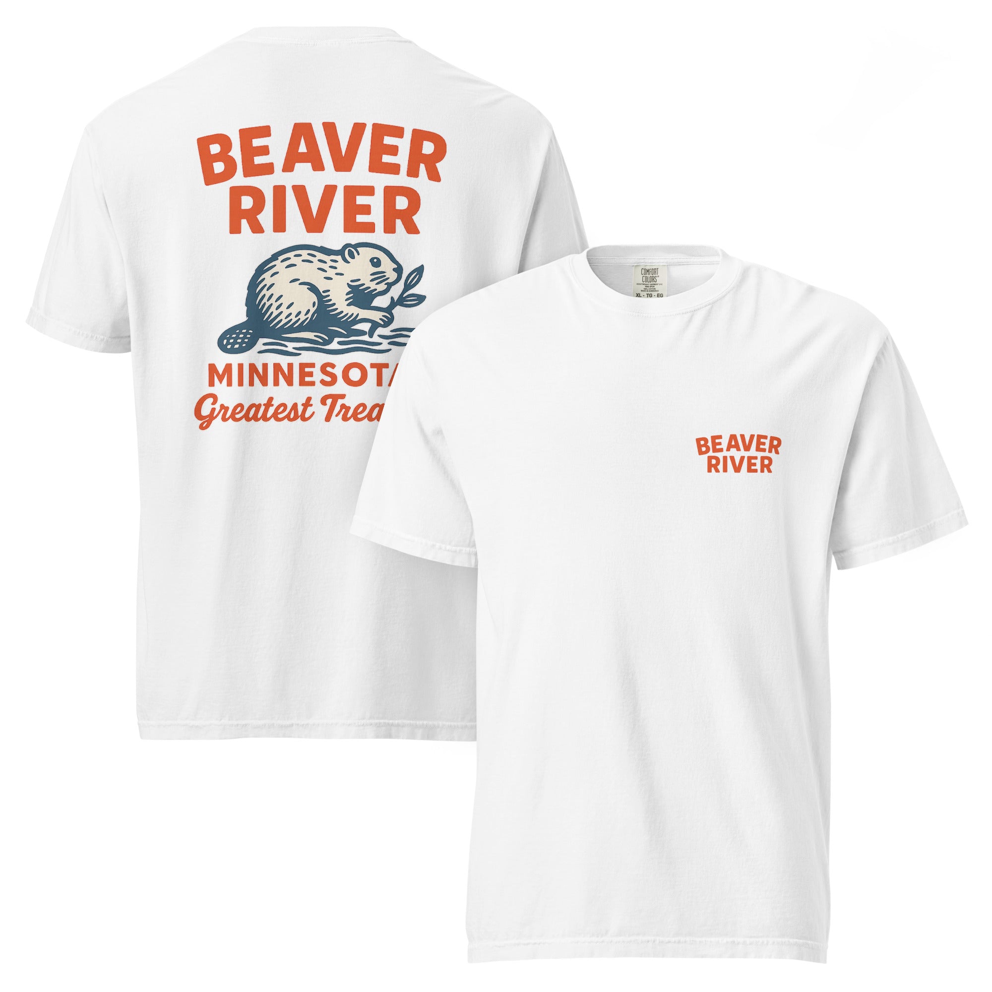 The Beaver River Tee blends classic Northwoods charm with an easy, everyday fit. Featuring a bold back graphic inspired by vintage outdoors posters and a subtle front chest hit, this tee celebrates one of Minnesota’s greatest treasures—its rivers, wildlife, and laid-back spirit.